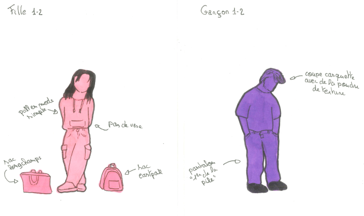Vous avez sûrement déjà remarqué certaines similitudes entre les élèves de votre niveau. Un sac à la mode, une coiffure que l’on voit partout ou même une marque qui a du succès,… Dans les dessins ci-dessous, nous avons essayé de regrouper un maximum de ces caractéristiques qui changent régulièrement. Vous en pensez quoi ? Vous vous y reconnaissez ?